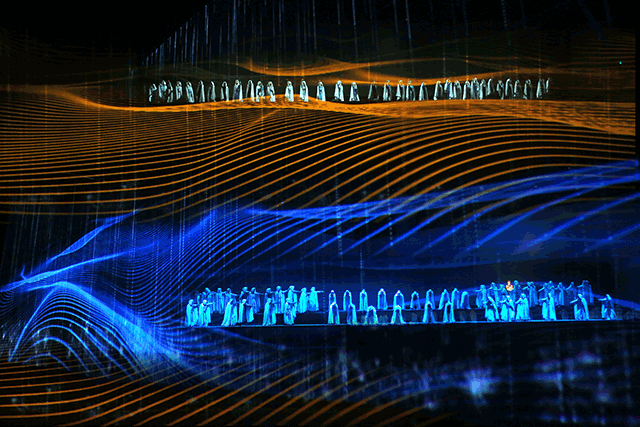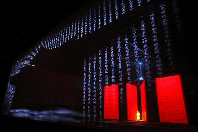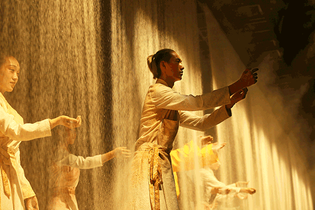 历经两年时间创作的《又见敦煌》,以全新的观演模式带领观众进行一次“古今穿越”。在剧场中,行五十步,您已穿越百年;行百步,您已穿越千年;最后,您也许将与自己的心见面。在不知觉中观众已被分成了十六组,分别进入不同的“洞窟”,与“古代人”对谈。这是一次观看,更是一次体验;《又见敦煌》无论是在艺术形式上还是空间的复杂设计上都可谓是“又见系列”的 之作。