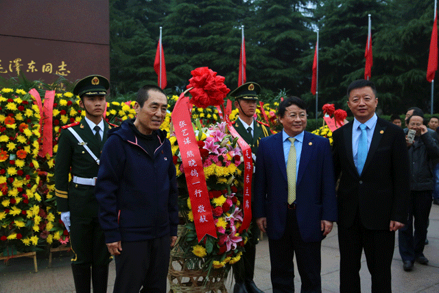上午,张艺谋导演、IDG资本创始人熊晓鸽、三湘印象总经理许文智等一行来到韶山向毛泽东铜像敬献花篮,下午观印象艺术发展有限公司与韶山市进行了“最忆韶山冲”项目合作协议签约。