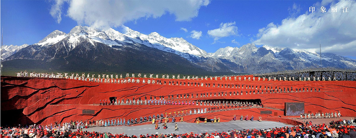 《印象丽江》以玉龙雪山为背景,以民俗文化为载体,由500名来自10个少数民族的铿锵汉子、来自16个村庄的普通农民倾力出演。在海拔3100米的演出,他们用原生的动作,质朴的歌声和炙热的汗水,与天地共舞,与自然同声,让生命的真实与震撼如此贴近每一个人。这就是365天与自然共同上演的印象大戏,是一场荡涤灵魂的洗礼。自公演以来,已成为丽江向世界展示多元民族文化的重要窗口。