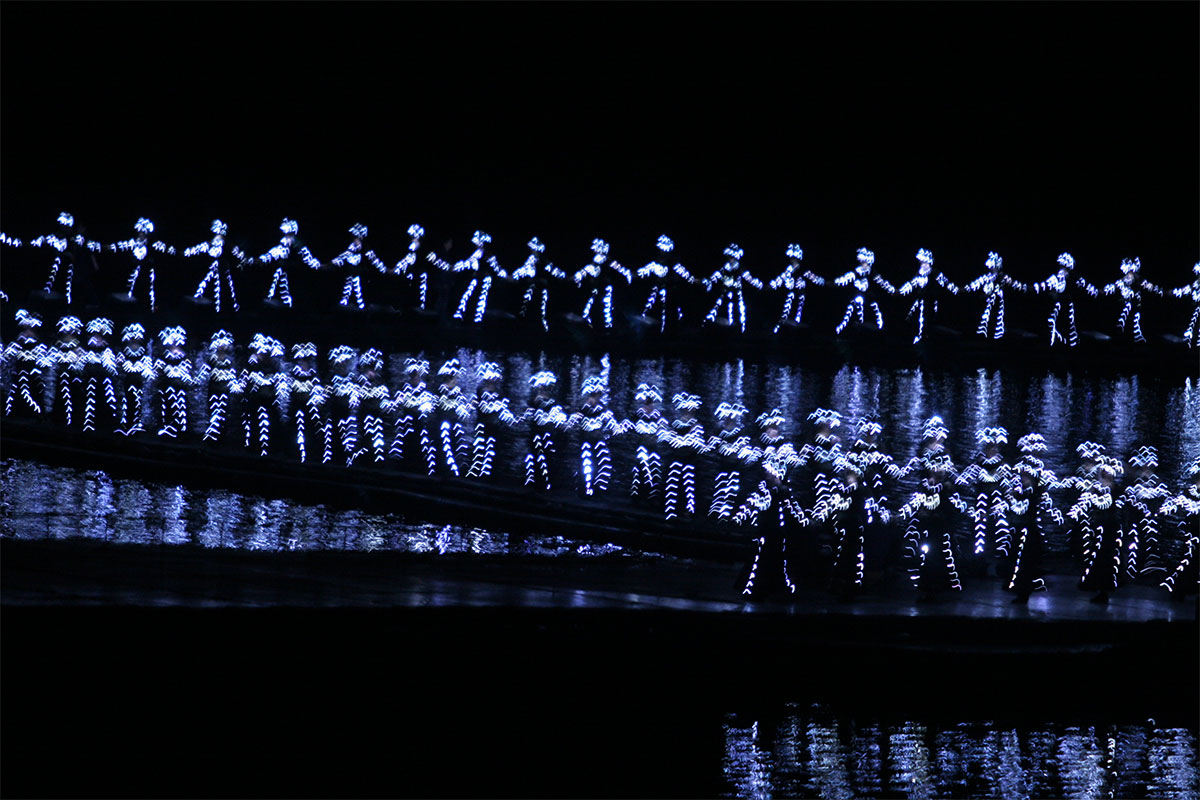 《印象·刘三姐》坐落于漓江河畔,180度全景视野,是中国具有代表性的融真山真水和民歌民谣于一体的山水实景演出,面积达两平方公里,集艺术性、震撼性、民族性、视觉性于一身,是一次演出的革命、一次视觉的革命。作为阳朔城市名片,该项目已成为激活当地消费增长新动能的引擎,并持续放大自身辐射力和影响力,带动区域经济高质量发展。