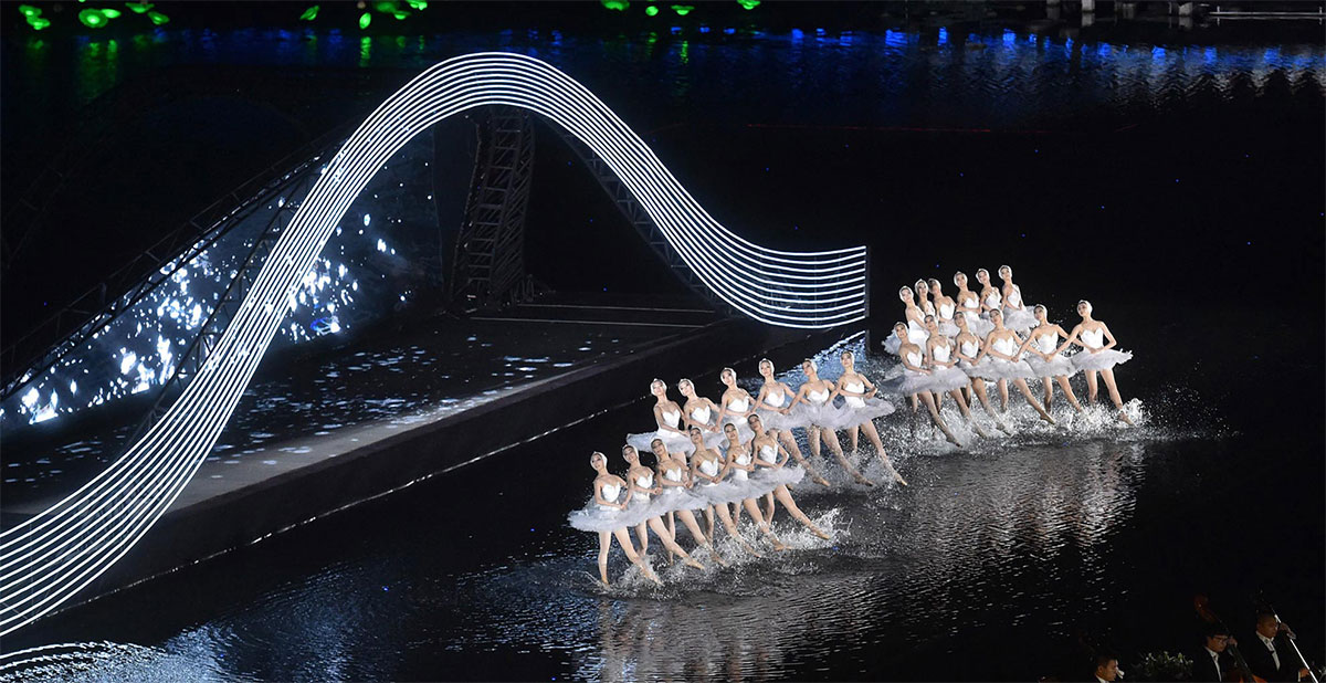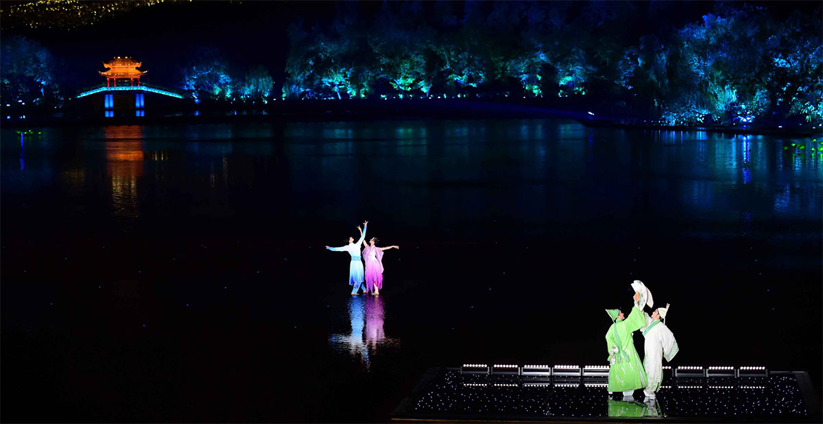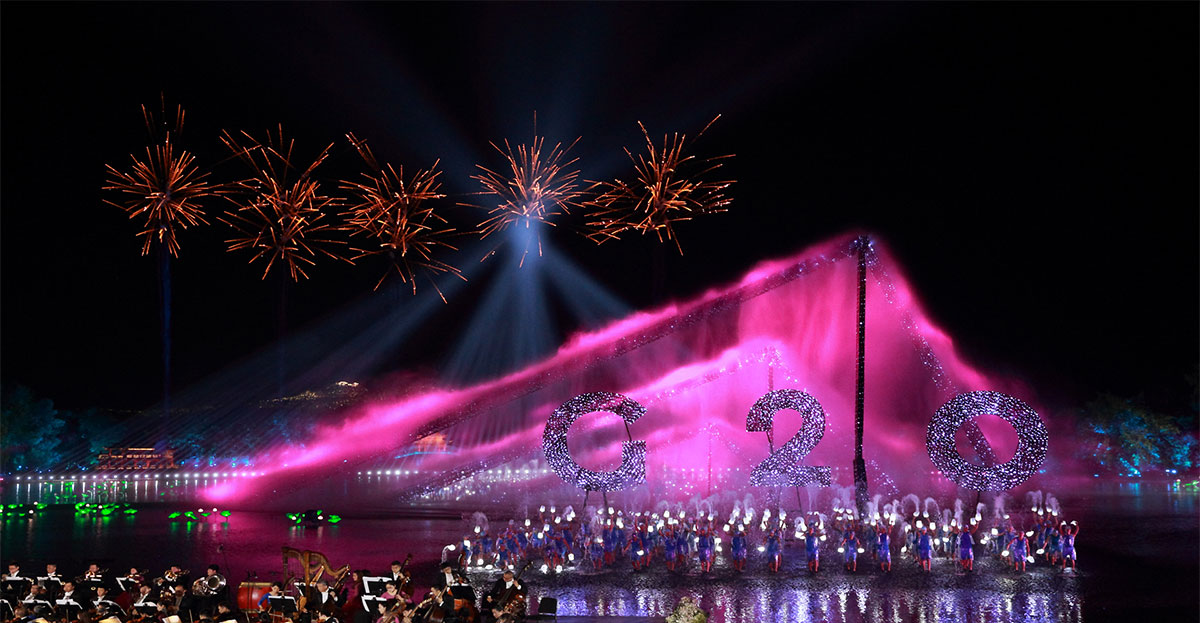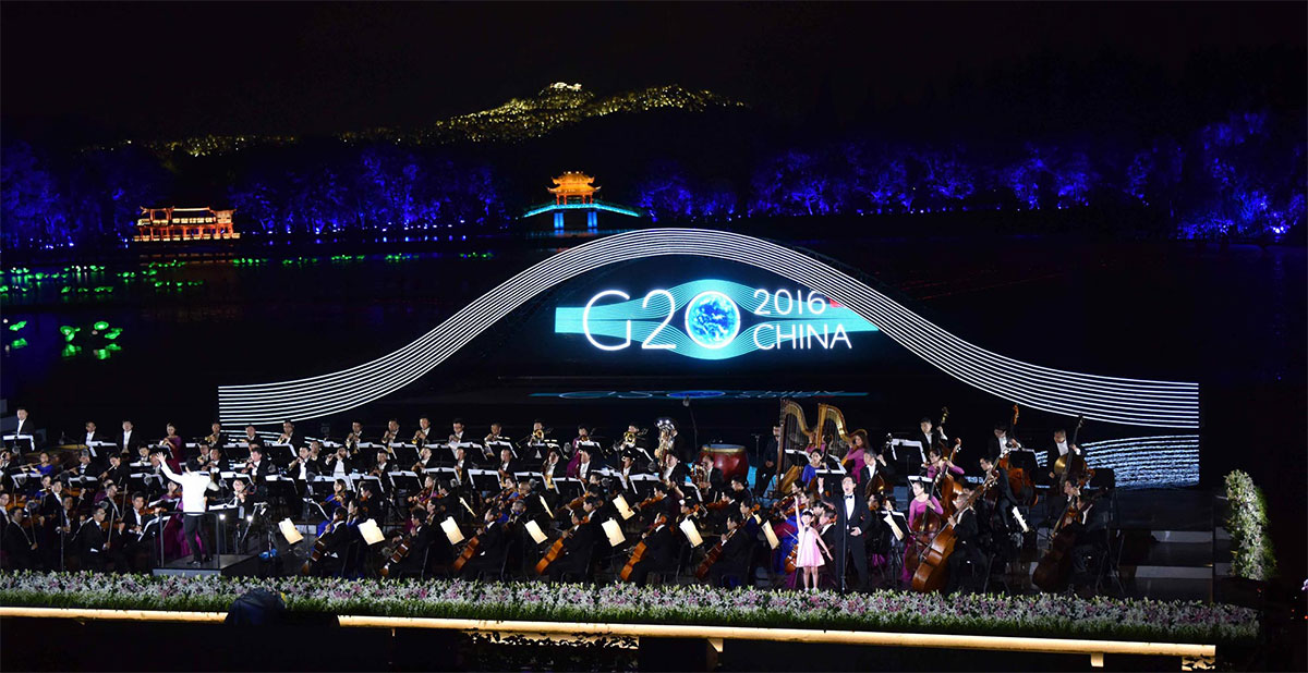 一曲《春江花月夜》拉开了G20峰会文艺演出《最忆是杭州》的序幕,实景演出交响音乐会充分融合了西湖元素、杭州特色、江南韵味、中国气派和世界大同。张艺谋总导演在保留峰会演出主要内容的基础上,对原作品进行了局部改造,以饱蘸中华文化千年墨笔的诗意表达,以音乐、舞蹈、视觉等多重艺术形式,将西湖承载的人文内涵,在演出中予以最酣畅淋漓的完美诠释,用世界语言证明了中国软实力!